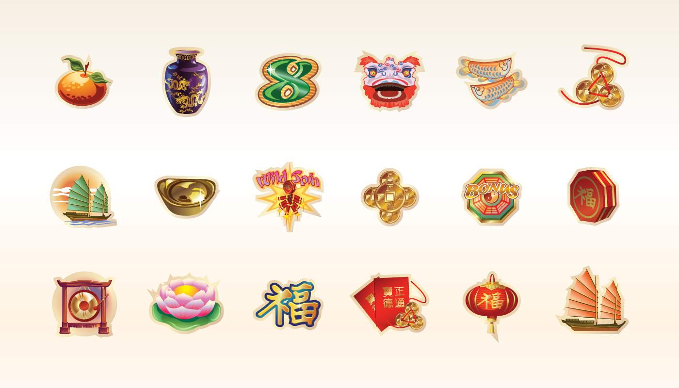 Signage and game assets for an online slots game