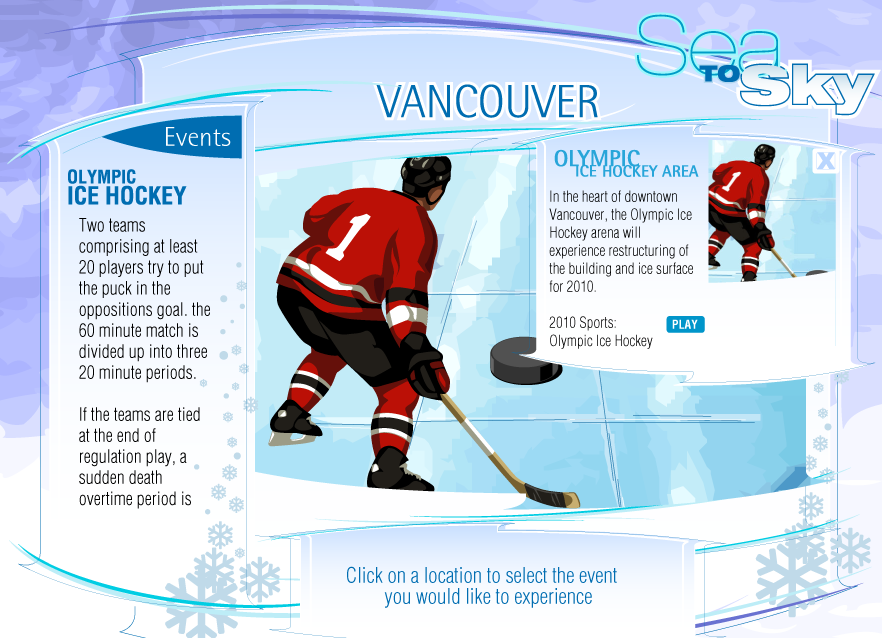 Vector illustrations for an Olympics themed game of chance 'Sea to Sky'